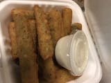 Zucchini sticks dipped in an egg mixture with bread crumbs, parmesan cheese, baking powder, & salt, fried until golden brown.